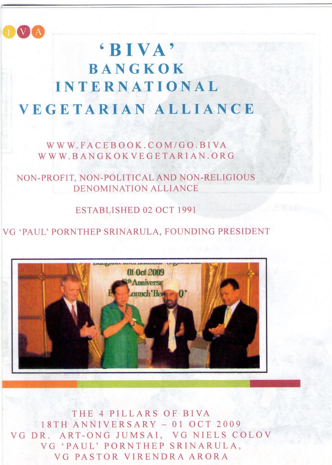 The Bangkok International Vegetarian Alliance held its 19th Anniversary Meeting on 2nd October 2010 at the Lotus Hotel. The theme of the meeting was vegetarian schools.